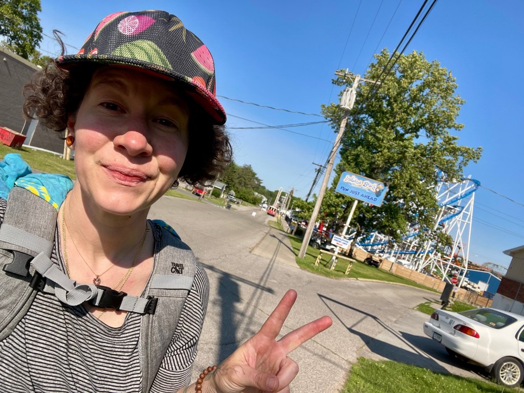 Today we crossed into the final timezone—Eastern, baybee! Deets and I were hoping to get a caricature done of us on the Indiana Beach boardwalk, but it was not that kind of beach, or boardwalk. That little amusement park seemed pretty sweet regardless, and the detour offered welcome roadside respite.