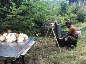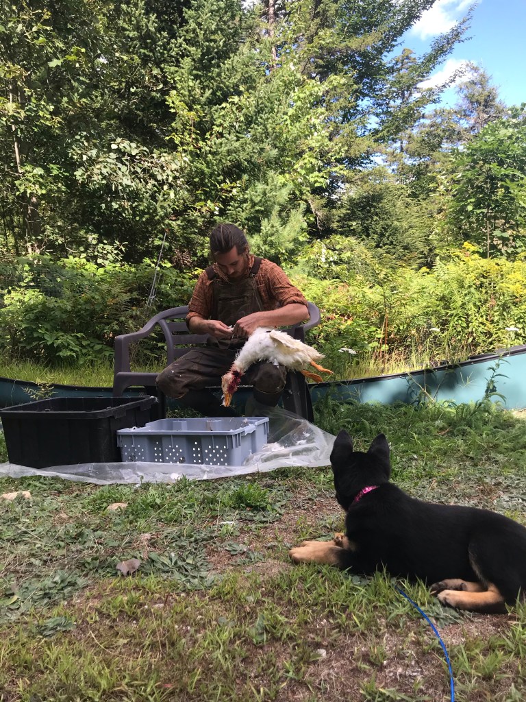 “I never thought I’d be so appreciative of plastic sheeting,” this man is excited to tell me about all of his tools. Proud and glad of an audience. He’s usually like this, in truth, though today with a dedicated respect for his task. i ask him about that. “This is an achievement. Providing is primal.” A part of me hears this and scoffs, but the witness to this day is more measured, sees that truth. The efforts here demand the whole of a person. Even the repetitive plucking.