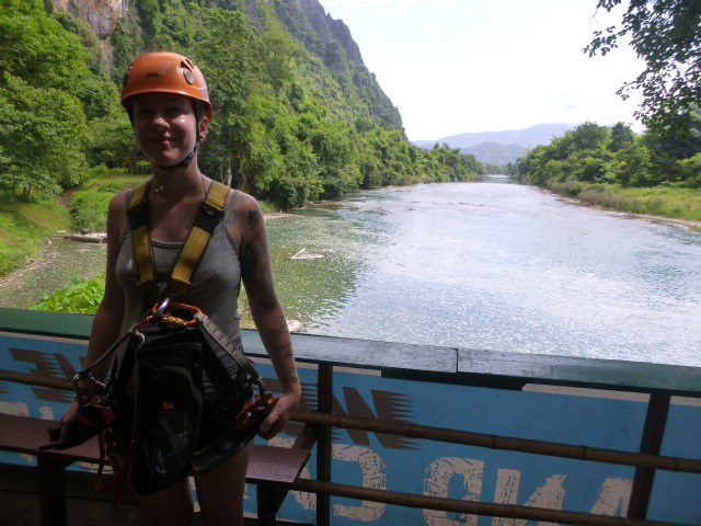 Zip-lining over the Nam Song River, LaosNam Song River, Laos